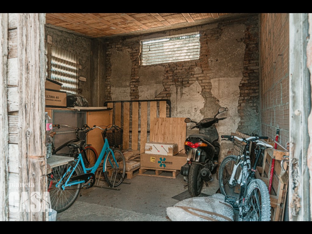 La struttura al piano terra, in muratura, offre un ambiente interno ampio e funzionale, ideale come magazzino, rimessa o spazio operativo;