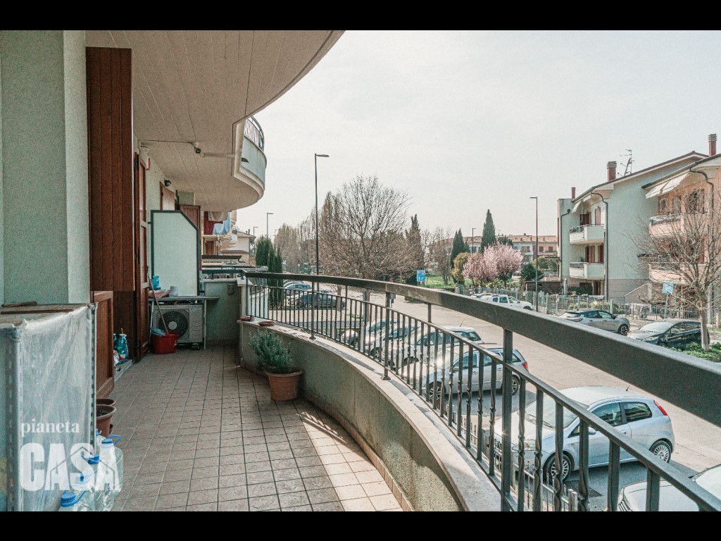 Il balcone collega soggiorno e camera da letto e offre un affaccio esterno.